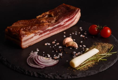 • Hagyományos ízvilág: A szalonna a legjobb minőségű alapanyagból, hagyományos pácolással és füstöléssel készül, hogy minden egyes szelet gazdag ízélményt nyújtson.