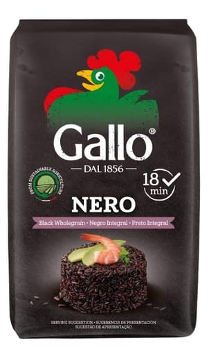 A Gallo Nero előfőzött rizs 100%-ban olasz, teljeskiőrlésű rizs, összetéveszthetetlen természetes fekete színnel, amely főzés közben a frissen sült kenyér jellegzetes aromáját bocsátja ki. Kínából származik, de jelenleg Olaszországban termesztik. Magnézium, foszfor és szelén tartalommal rendelkezik, amelyek jótékony hatással vannak egészségünkre. Halételekhez, kagylóhoz, fantáziadús rizssalátákhoz ajánljuk. Próbáld ki cukkinivel és koktélparadicsommal, vagy gorgonzolával és dióval is, szósszal serpenyőben pirítva.