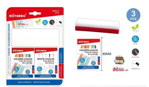 Kréta szett: 12 db fehér kréta +12 db színes kréta+törlő szívacs