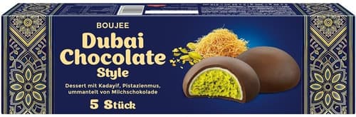 Chocolate flavoured ice cream dessert with ground hazelnut milk chocolate, and a pistachio filling with toasted pastry strands and rice noodles. Enjoy the luxurious taste of the Dubai Chocolate flavoured ice cream dessert – an exclusive masterpiece of confectionery! These frozen delights combine silky milk chocolate with the unique aroma of ground hazelnuts. The delicate pistachios and toasted pastry strands in the filling add an exciting crunch. With every bite, you can experience the perfect balance of luxurious taste and elegant appearance. Ideal for special occasions or to indulge your senses.