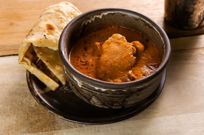 Mahavir Kanswal séfünkkel együtt elkészítettük önnek a hagyományos indiai vajaskcsirkét (Butter Chicken) naan kenyérrel. A tökéletes indiai stílusú csirke titka a szószban és a fűszerek meglehetősen összetett használatában rejlik – ez egyfajta kis alkímia, amit Mahavir imád! A hagyma és a paradicsom csodálatosan édes ízjegyekkel gazdagítja az ételt, a végső simítást pedig a tejszín adja, amely kiemeli a krémes selymességet. Köretként a hagyományos naan kenyeret választotta, amelyet speciális tandoori kemencében sütnek.