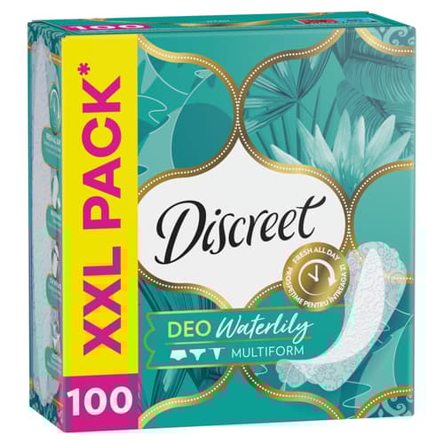 A Discreet Multiform Waterlilly tisztasági betét segít, hogy bármilyen stílusú fehérneműben frissnek és gyönyörűnek érezhesd magad egész nap. A tisztasági betét lehetővé teszi az intim bőrfelületek természetes légzését, és akár 12 órán át tartó frissességet és kényelmet nyújt. Szinte észrevehetetlen vékonyságú, multiform kialakításának köszönhetően pedig bármely típusú fehérneműhöz illeszkedik. Kifejezetten friss és nőies, jellegzetes vízililiom illattal. Bármit hozzon is a nap, ezzel a tisztasági betéttel biztosan sikerre viszed.