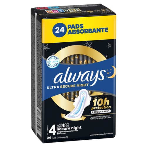 Always Ultra Secure Night Egészségügyi Betét, 4-es méret, 24 db