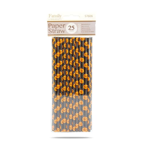 🎃 Family Halloween Papír Szívószál – Tökös Stílusban! (25 db)