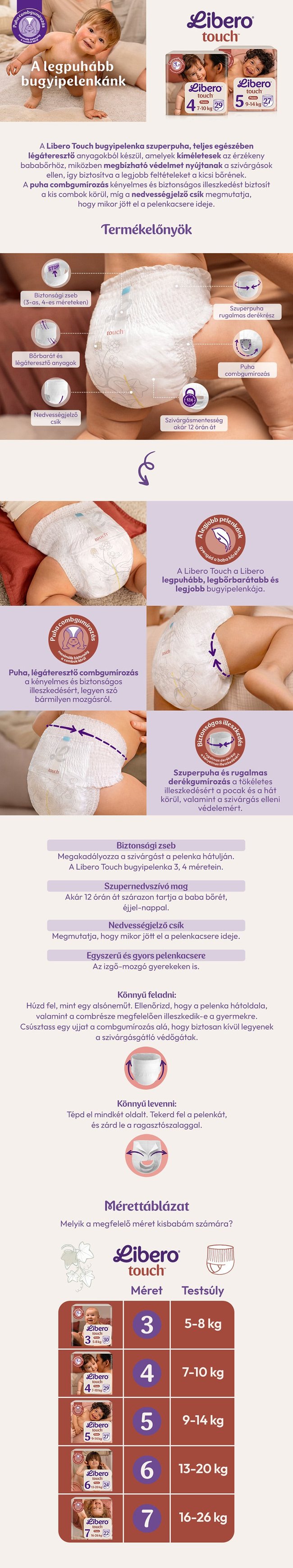 A Libero Touch 5 a Libero legpuhább, legvékonyabb és legbőrbarátabb bugyipelenkája, amely gondoskodik a mozgékony kisbabák kényelméről és bőrének védelméről – kompromisszumok nélkül.