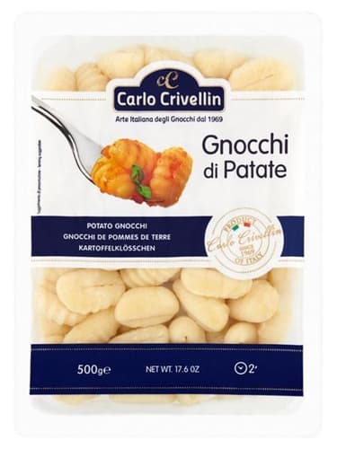 A Crivellin Gnocchi gondosan válogatott burgonyából és minőségi búzalisztből készül, a hagyományos olasz receptek alapján. A tészta tökéletes arányban tartalmazza az összetevőket, így a gombócok főzés után is megőrzik lágy, selymes textúrájukat, és könnyedén magukba szívják a szószok ízét. A pasztörizált elkészítésnek köszönhetően könnyen és gyorsan elkészíthetőek.