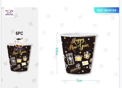 🥂 Happy New Year Papírpohár – 6 darabos szett, 250 ml