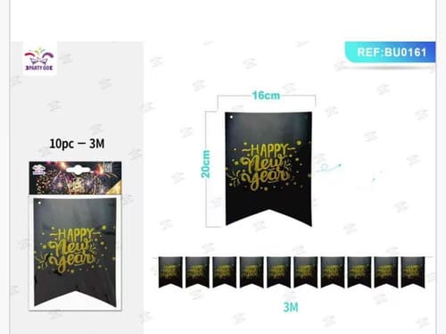 Varázsold el a helyszínt ezzel a 3 méter hosszú, színes Happy New Year papír girlanddal, amely tökéletes kiegészítője lesz a szilveszteri vagy újévi bulidnak!
