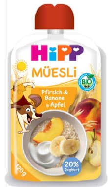 đđđ HiPP Organic Muesli â peach, banana and apple in puree â from 1 year old