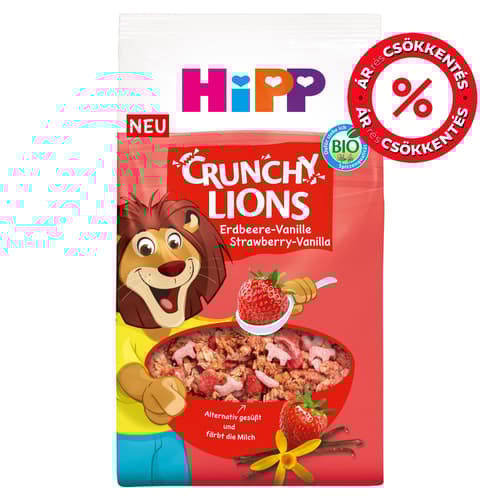 🍓🦁 Hipp Bio Ropogós Oroszlánok Eper-Vanília – Egészséges nassolás gyermekeknek 3 éves kortól!