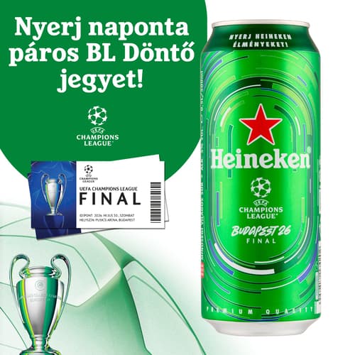 1873-ban Gerard Heineken annyira büszke volt újonnan megalkotott prémium sörére, hogy egyből a nevére is vette az összes palackot. Így született meg a Heineken, és vált hamarosan Amszterdam, majd egész Hollandia kedvencévé. Most, 4 emberöltővel később, a minőség iránti elkötelezettségünknek köszönhetően naponta immár 25 millió Heinekennel koccintanak a világ 192 országában. A Heineken egy lager sör különleges A-élesztő felhasználásával készül, amely az összetéveszthetetlenül harmonikus, enyhén gyümölcsös ízjegyeket garantálja.