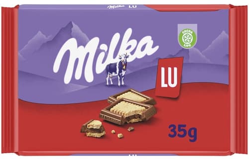 Alpesi tej felhasználásával készült tejcsokoládé ropogós keksszel (26%).