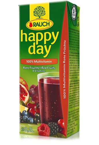 The Rauch Happy Day 100% Red Multivitamin drink is made from a rich blend of various red fruits – such as apple, grape, sour cherry, blackcurrant, raspberry, elderberry, and pomegranate. The fruit juices are partly made from concentrate, but contain no added sugar or artificial additives.