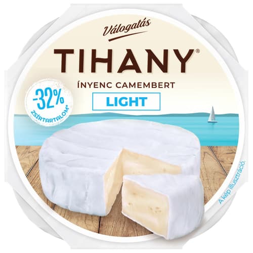 Válogatás Tihany Ínyenc Camembert Light: fehér nemespenésszel érlelt, natúr, zsíros lágysajt.