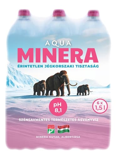 Igazoltan jégkorszaki, 26.000 éves ásványvíz a Pannon-medencéből. 8,0 pH értékkel rendelkezik, mely gyomorbarát, kellemes ízérzetet ad, nátriumszegény diétába illeszthető, kiegyensúlyozott ásványianyag tartalmú természetes magyar ásványvíz Albertirsáról a Minera kutakból. Kutatással igazoltan mentes minden emberi érintéstől. Fogyasztása biztosíthatja a napi hidratációt és hozzájárulhat az egészséges életmódhoz. Ásványi anyag összetétele és kellemes íze még a gyerekek számára is támogathatja a napi vízivást.