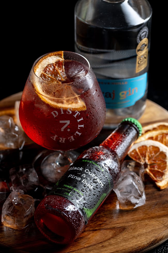 Elkészítették a Sevenhills saját márkás tonikok első generációját, ahol is egy igen bevállalós, és egyben nagyon különleges ízpárral nyitnak! Minthogy a Tokaj gin készítésénél használnak jelentős mennyiségű feketeribizlit, és helyi zempléni erdei fenyőrügyet, így a terv az volt, hogy ezt próbálják meg olyan formában egy tonikban ötvözni, hogy az végeredményben ne egy szörp legyen, hanem szignifikánsan egy prémium tonic. Színe a feketeribizlitől pirosas és a háttérben a sárgásság a fenyőrügy gyantája! Gyümölcsösen igazlmas, majd a fenyőrügy gyantája jön és a kinin kesernyéje zárja az íz élményt.