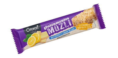 Cornexi Citromos nápolyi ízű müzliszelet édesítőszerrel, hozzáadott cukor nélkül, gluténmentes