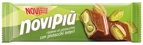 Novi NOVIPIU tejcsokoládé szelet pisztáciás töltelékkel és egész pisztáciával