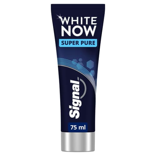 Fedezze fel a Signal White Now Superpure fogkrémet, amely már az első használat után optikailag fehérebbé varázsolja mosolyát. A klinikailag tesztelt formula akár háromszor fehérebb hatást biztosít, mint a hagyományos, fehérítő összetevőt nem tartalmazó fluoridos fogkrémek – mindezt kíméletesen, a zománc megóvásával.