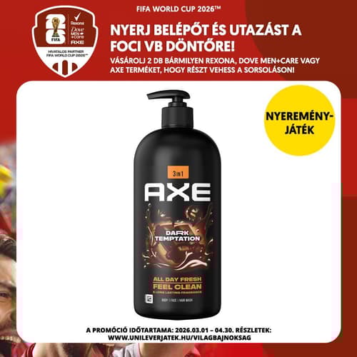 Axe Dark Temptation tusfürdő, most még nagyobb méretben! Csábító és elbűvölő illatával ellenállhatatlan, akár a csokoládé. Az AXE tusfürdők hosszantartó illatukkal segítenek megőrizni a frissességet. Használhatod őket testre, arcra és hajra egyaránt.