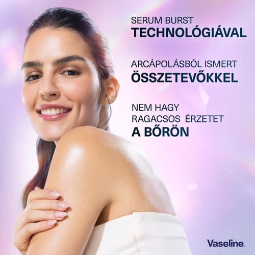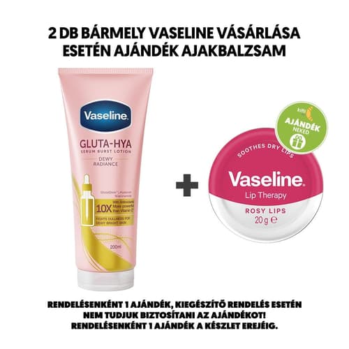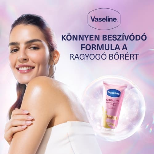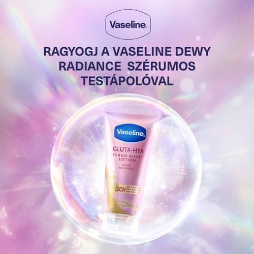 A Vaseline Dewy Radiance szérumos testápoló GlutaGlow technológiával, hialuronsavval és niacinamiddal hidratál, élénkít és ragyogóbbá varázsolja a bőrt. Könnyed, gyorsan beszívódó formula sima, egységes bőrérzetet hagy maga után.