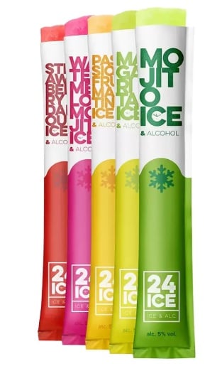 A 24ICE Mojito jégkoktél egy frissítő és egyedi módja a klasszikus mojito koktél élvezetének, praktikus 6,5 cl-es zacskókban. 5% alkoholt tartalmaz és csak 56 kalóriát. A 24 ICE fagyasztott koktélok különböző színekben és ízekben kaphatók, alkoholos és alkoholmentes változatban egyaránt. Az ízek között megtalálható a Watermelon Mojito, Passion Fruit Martini, Margarita, Gin & Tonic, Mojito, Strawberry Daiquiri, Limoncello és Vodka Energy. Minden fagyasztott koktél 5% alkoholt tartalmaz és mindössze 56 kalóriát.