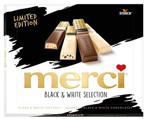 Kóstold meg a merci Black & White csokoládét, és fedezd fel az elegancia és az ízek harmóniáját! Ha szereted a klasszikus kontrasztokat, és egy kifinomult, mégis kényeztető csokoládéra vágysz, akkor ez a merci válogatás a tökéletes választás lehet számodra.