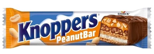 For those who love the taste of peanuts: Knoppers Peanut Bar. Wafer, fine milk cream, crispy roasted peanuts, caramel, all covered in chocolate.