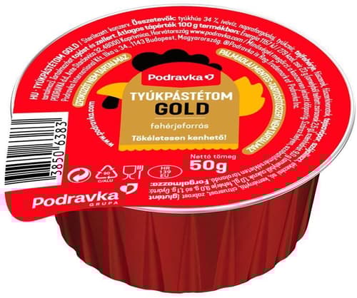 Podravka Gold csirkepástétom kimagasló 37% hústartalommal.