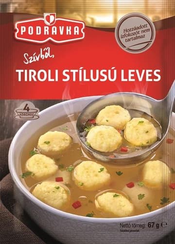 Podravka Tiroli stílusú instant leves. Pár perc alatt elkészíthető, 4 fő részére elegendő.