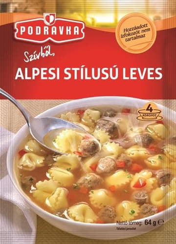 Podravka Alpesi stílusú instant leves. Pár perc alatt elkészíthető, 4 fő részére elegendő.
