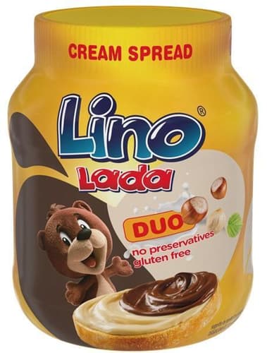 A Lino Lada márka a kényeztető, édes reggelik és uzsonnák elengedhetetlen része. A "Duo" változat pedig egy igazi klasszikus: a tégelyben a selymes, intenzív mogyorós-kakaós krém találkozik a lágy, édes tejes krémmel. A két szín és két íz csíkosan keveredik, így minden kanál egyszerre kínálja a kakaós mogyoró és a tejes kényeztetés zamatát.