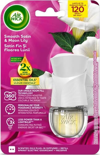 Air Wick elektromos légfrissítő készülék, Bársonyos Szatén és Éji Liliom utántöltővel