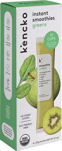 - A Kencko olyan öko‑tudatos márka, amely fagyasztva szárított gyümölcsökből és zöldségekből készít por állagú smoothie‑csomagokat. Ezeket vízzel vagy növényi tejjel összerázva könnyen fogyaszthatod – minden csomagban kb. 2,5 adag friss gyümölcs és zöldség van, ami nagyjából a napi ajánlott mennyiség felét adja .