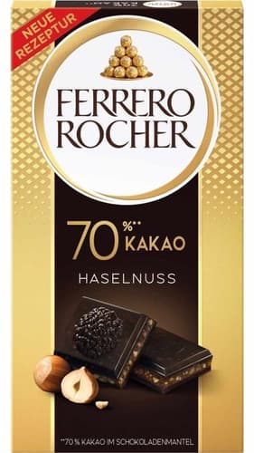 Minőségi csokoládé (60%) mogyorós töltelékkel (37%) és mogyoródarabkákkal.