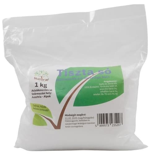 Kiváló minőségű tisztaságú sót kínál az ételkészítéshez. Ez a só ideális választás lehet mindenféle főzéshez, sütéshez és ételízesítéshez, mivel tiszta formájában nincs hozzáadott adalékanyag vagy szennyeződés.A Tiszta só számos kulináris alkalmazást kínál. Felhasználható ételek ízesítésére, sütésre, főzésre, és akár a konzerválás folyamatában is. A termék tiszta ízével kiemeli az ételek természetes ízét, és rugalmasan alkalmazható különböző receptekben. Ezenkívül a Naturae Group Tiszta só 1 kg egy praktikus kiszerelést kínál, ami ideális otthoni konyhák számára, ahol a sokoldalú és minőségi alapanyagok fontos szerepet játszanak az ételkészítésben.