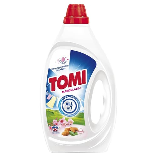 Fedezze fel a Tomi Mandulatejes folyékony mosószert, ami ideális választás színes ruháihoz! Ez az EU-ban gyártott, erőteljes formula extra erős folteltávolítást biztosít, már 20°C-tól hatékonyan dolgozik, így energiát takaríthat meg. Ragyogó tisztaságot és kellemes illatot kölcsönöz a ruháknak, a piszkos szennyest friss, tiszta halommá varázsolva. Egy csomag 30 mosásra elegendő, de gyapjú és selyem textíliákhoz nem ajánlott.