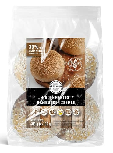 Szafi Bakery Szénhidrátcsökkentett hamburger zsemle 4x102g (gluténmentes)