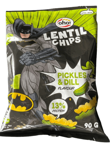Készülj fel egy éjszakai nassolásra az OHO "Batman" lencse chipsszel! Ha a savanyúuborka frissítő zamatára vágysz, amit a Sötét Lovag legendás stílusa egészít ki, és mindezt egy könnyed, lencse alapú snack formájában, akkor ez a 90 grammos chips a tökéletes választás számodra. Érezd az ízek sötét erejét, bűntudat nélkül!