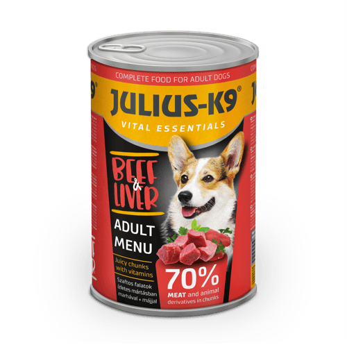 đŸ Julius-K9 teljes Ă©rtĂ©kƱ nedves eledel kutyĂĄknak â marha & mĂĄj (1230 g)