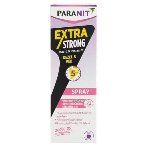 A Paranit Extra Strong spray bizonyítottan 100%-os hatékonysággal veszi fel a küzdelmet a fejtetvek ellen már 5 perc alatt, valamint véd az esetleges újrafertőződésektől.