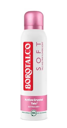 A Borotalco Soft Deo roll-on akár 48 órán át hatékonyan véd a púder, a rózsaszín virágok és a gyöngyvirág illatával. Háromszoros száraz védelmet és extra száraz hatást biztosít a púder nedvességfelszívó hatásával, a Active Crystal Talc hatóanyaggal gazdagított formulájának köszönhetően. • Korlátozza az izzadás kialakulását. • Felszívja az izzadságot. • Semlegesítit az izzadságot alkotó molekulákat A deo nem tartalmaz alkoholt és bőrgyógyászatilag tesztelt.