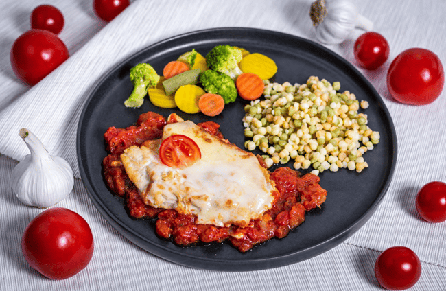 Pappudia Csirkesteak mozzarellával, zöldégekkel és tarhonyával
