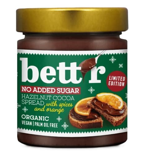 Bemutatjuk az új kedvenc élvezetét: a kedvelt cukormentes mogyorós kakaókrémünket, most ünnepi változatban. A pikáns narancsolajjal és meleg fűszerekkel, mint a gyömbér és a fahéj, átitatott kakaókrém az ünnepi szezon hangulatos, nosztalgikus ízvilágát hozza el az asztalra.