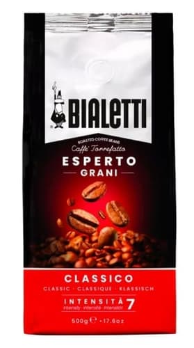 Bialetti Classico whole bean coffee is a balanced coffee blend with a delicate and lasting flavour. It is a premium blend of 50% Arabica and 50% Robusta coffees, soft and aromatic, with sweet floral and dried fruit notes, complemented by a slow, medium roast. This is why it is considered the perfect coffee after a good lunch.