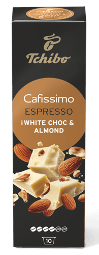 The Tchibo Cafissimo Flavoured Espresso White Choc & Almond is a special capsule coffee developed for lovers of soft, sweet-nutty experiences. Limited edition, ideal as a dessert espresso or as a base for milk coffees, such as latte macchiato or cappuccino.