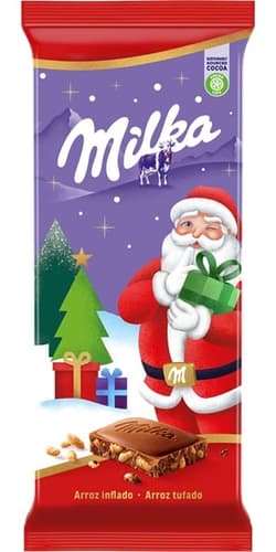 Alpesi tej felhasználásával készült tejcsokoládé puffasztott rizzsel (15%).