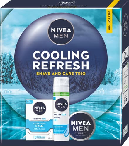 A Cooling Refresh – Shave and Care Trio három alapvető NIVEA MEN terméket tartalmaz, amelyek együtt gondoskodnak a tiszta, hidratált és nyugtatott bőrről.
