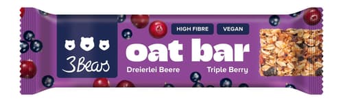 A 3Bears Oat Bars Tripla Bogyós Gyümölcs Zabszelet azoknak szól, akik szeretnének egy gyors, finom és tápláló snacket, amely a ropogós zab és a friss gyümölcsök harmonikus kombinációját kínálja, így tökéletesen illeszkedik a tudatos, aktív életmódhoz.