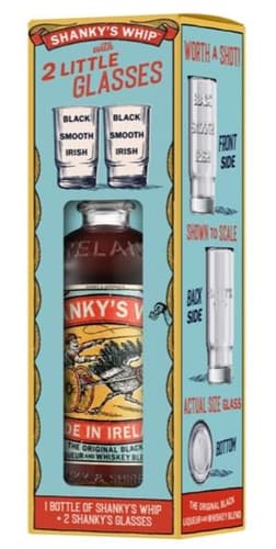 A Shanky's Whip Black Irish Whisky Liqueur egy ír whisky, karamell és vanília kombinációjával. A karamella, a vaj, a tejszín, a vanília és az édes fűszerek aromái uralják kóstoláskor. A Shanky's Whip-et Írországban desztillálják, keverik és palackozzák. Ez a különleges ital, fekete ír whiskyből és ír szeszes italokból készül, a vanília természetes ízével és karamellel gazdagítva. Az így kapott párlat gazdag ízét fűszeres ír whisky jegyek uralják, emellett krémes és édes. Címkéjét a vintage, ír gyufásdoboz grafikák ihlették, és egy ír zsoké, Shanky látható rajta.